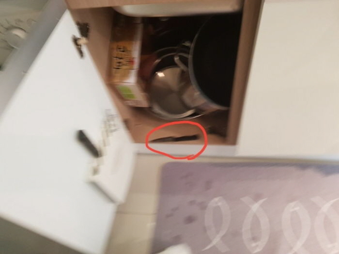 마치 누군가 몰래 과도를 싱크대 밑에 두고 간 것처럼 보였다.