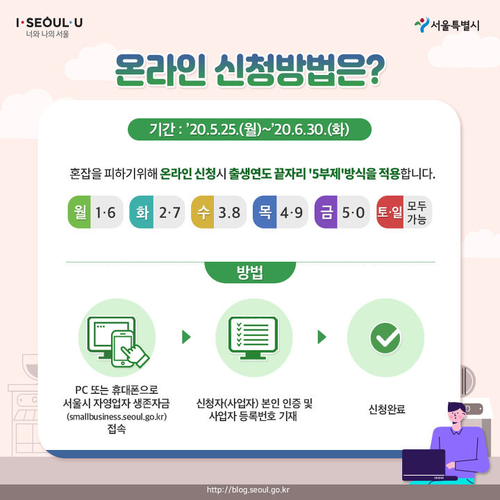 온라인 접수는 6월 30일까지 가능하며 ‘서울시 자영업자 생존자금 홈페이지’에서 신청할 수 있다.