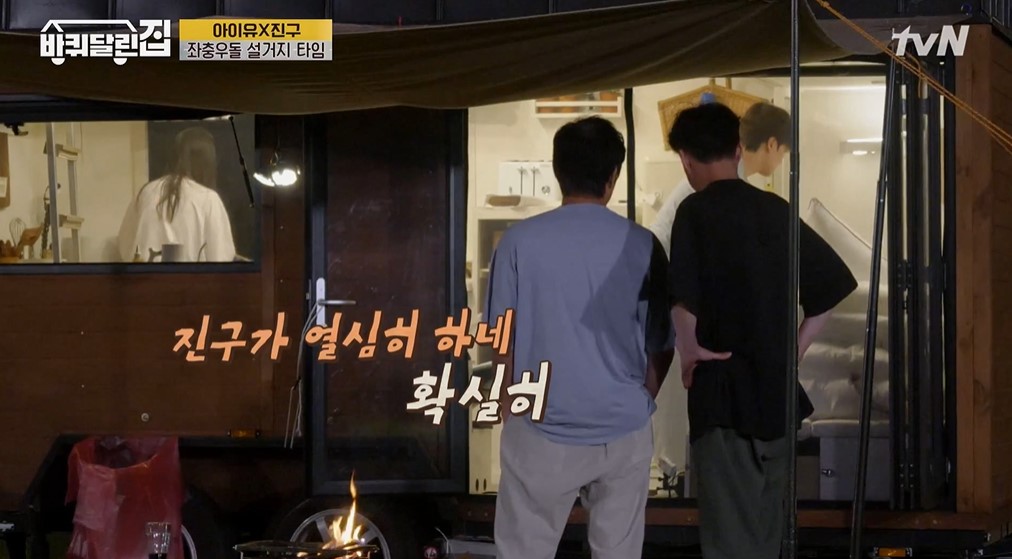 아이유는 성동일, 김희원, 여진구와 함께 문경에서 ‘차박’을 했다.