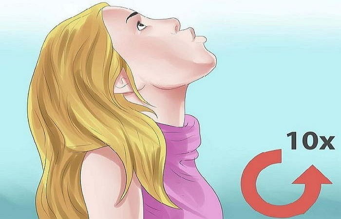 먼저 허리를 곧게 편 상태에서 머리를 한쪽 방향으로 원을 그리며 10회 돌린 후 반대 방향으로도 10회 돌린다.