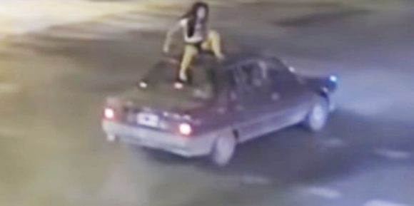 오토바이를 몰던 10대 여성이 충돌 후 차량 지붕 위로 올라가 목숨을 건졌다.