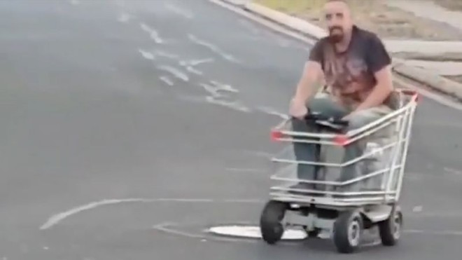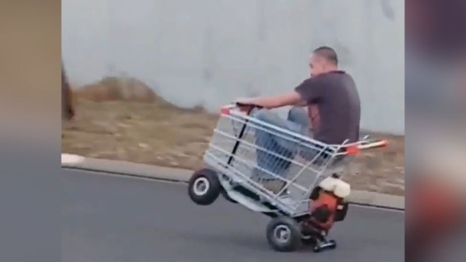 한 호주 남성이 쇼핑 카트에 모터를 달고 도로를 질주하는 광경이 목격돼 화제다.
