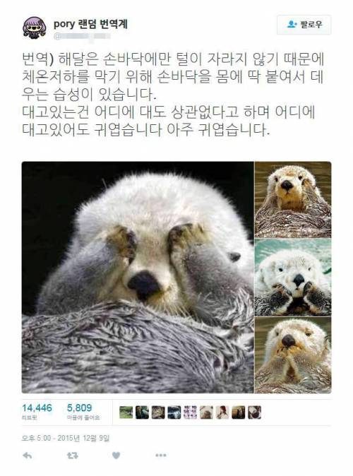 해당 게시글을 올린 작성자 A씨는 “해달이 귀여운 이유”라는 제목의 글로 많은 이들의 관심을 끌었다.