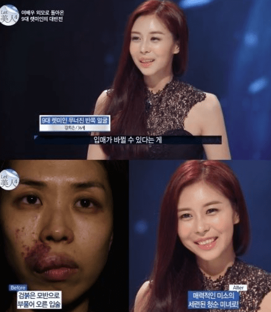 해당 프로그램에 출연한 김희은 씨는 의사들의 도움을 받아 얼굴을 치료를 받게 됐는데 성형을 한 이후 그녀에게는 이전의 모습은 찾아 볼 수 없었다.