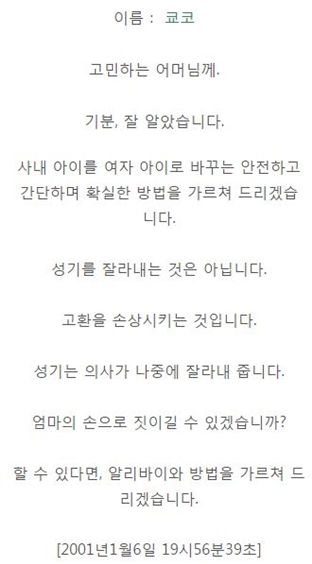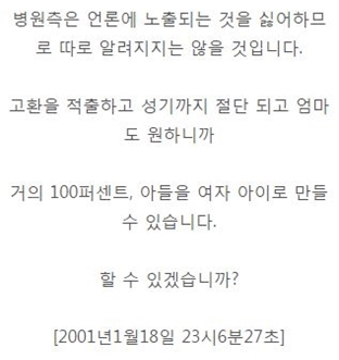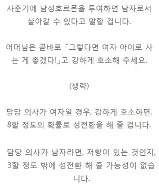 근데 이런 수술은 성적자기결정권이 생기고 나서 자신의 판단과 책임과 함께 진행되어야한다.