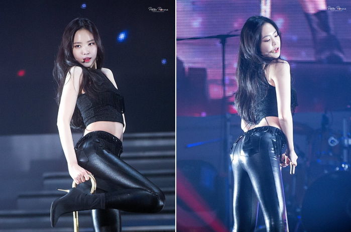 몸에 찰싹 달라붙는 크롭탑에 가죽바지를 입은 걸그룹 에이핑크의 멤버 손나은이 누리꾼들의 관심을 받고 있다.