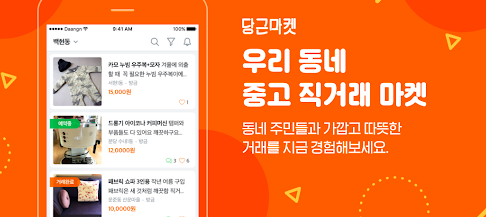 당근마켓은 동네에서 중고 직거래 할 수 있는 지역 기반 중고거래 스마트폰 애플리케이션 서비스이다.