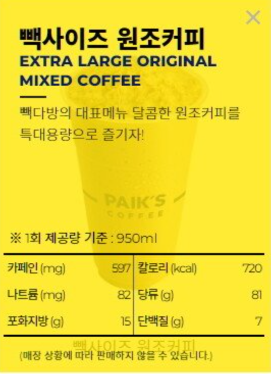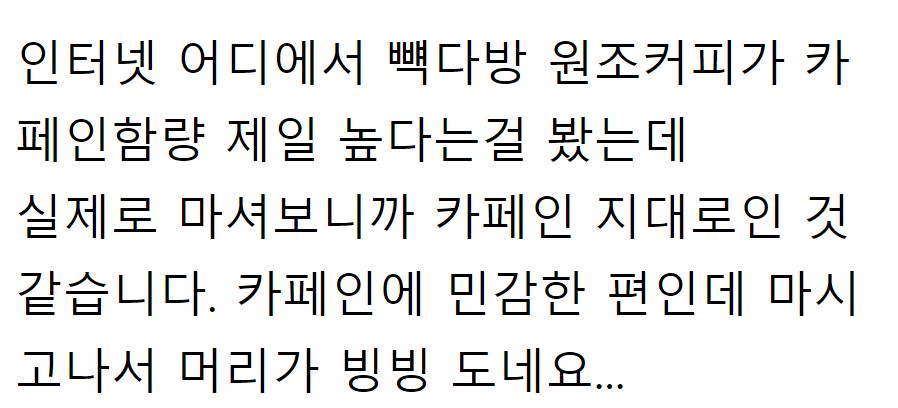 평소 고급 커피를 즐기던 사람이라면 “웬 다방커피 맛?!”이라고 생각하고 실망할 수도 있는데, 빽다방이라는 점을 명심하자.