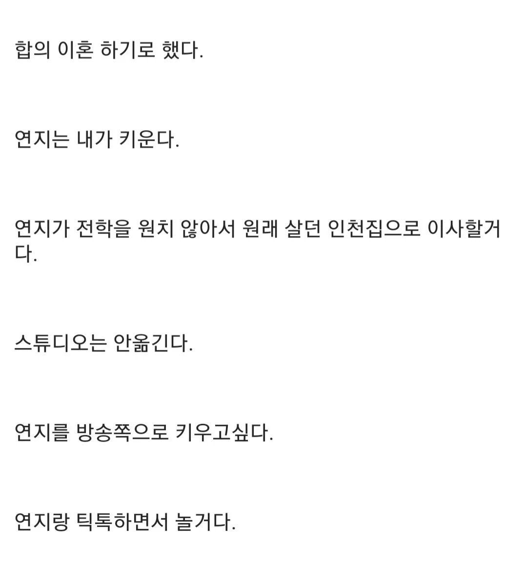 그는 “이혼이 이미 확정이 됐다. 법원에 서류를 제출했고, 합의 이혼하기로 했다. 한 달 정도 쉬었는데, 그간 ‘SNS는 하면서 방송은 왜 안 하냐’고 하는 사람이 많더라. 개인적으로 많이 힘들었고, 우울증도 와서 솔직히 방송은 하기 싫었다”고 심경을 전하는 모습이었다.