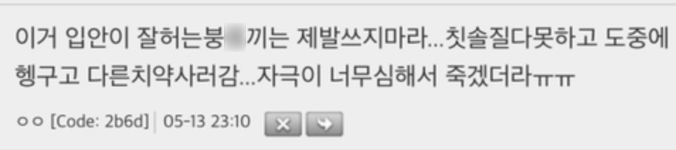 작성자 A씨는 “하 이 치약 진짜 왜 샀지 이닦는게 고문이야 진짜 x같다” 라는 제목의 글로 많은 이들의 궁금증을 증폭시켰다.