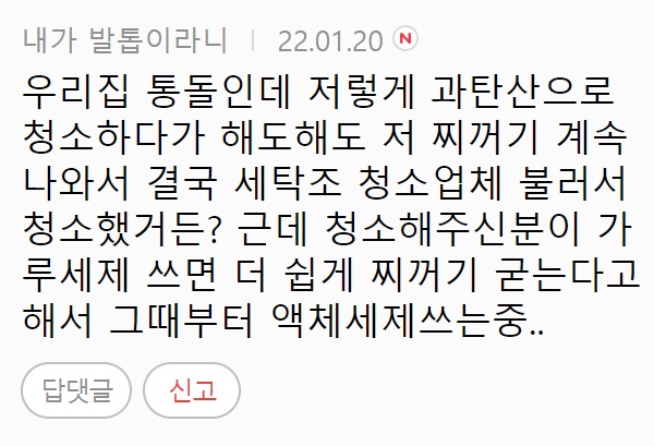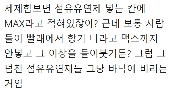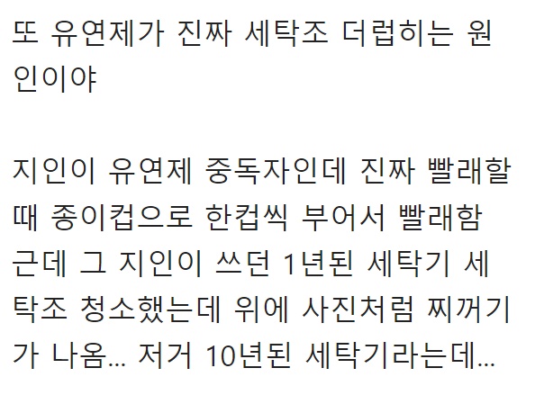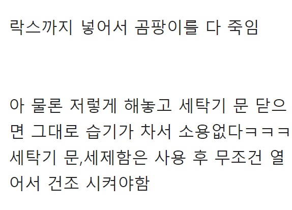 A씨는 “세탁기에 뜨거운 물을 가득 채운 후” 라 첫 문장을 전했다.