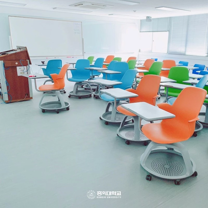 그런데 리모델링 사진들 중에서 홍익대 학생들의 관심을 끄는 것이 있었는데 그것은 바로 “일체형 책상”이었다.