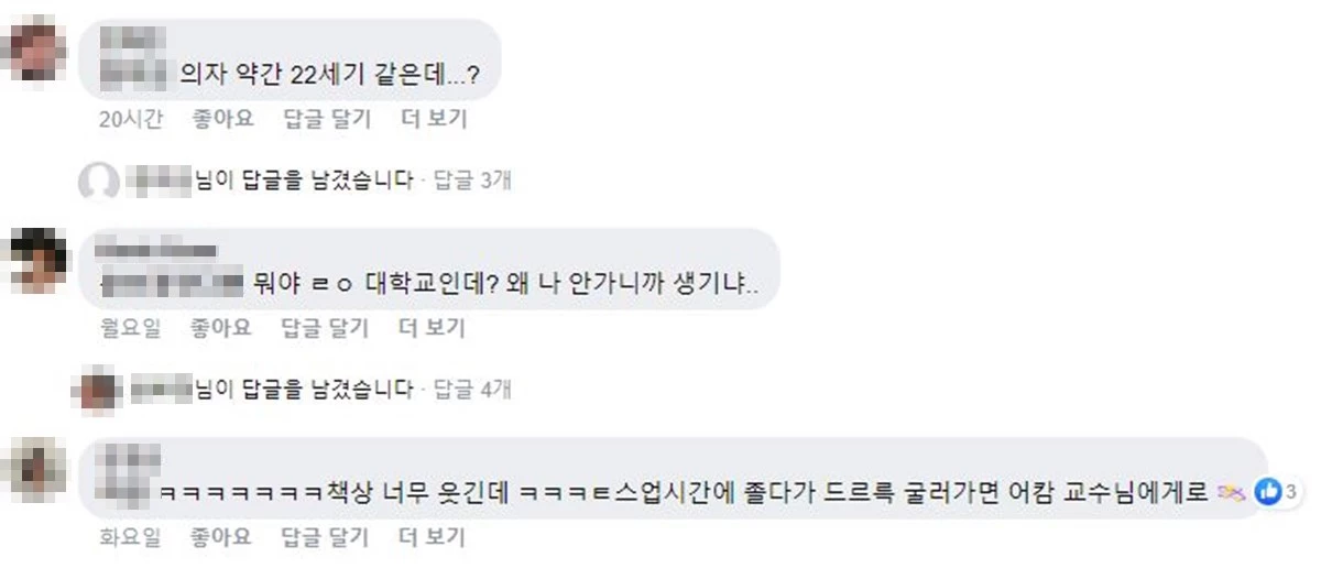 “일체형 책상”은 8, 90년대에는 강의실에 흔히 볼 수 있었지만 많은 단점들로 인해 현재는 자취를 많이 감춘 편이었기에 많은 학생들이 새로운 의자를 보고 불만을 토로했다.