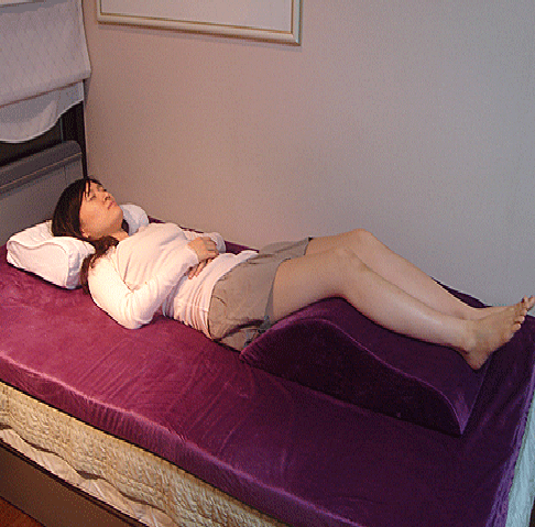 무릎 아래에 베개를 두거나 허리 아래 쪽에 돌돌 말은 수건을 받쳐주면 자연스러운 곡선을 가진 부위에서 몸을 지탱하고 등으로부터 압력을 분산하는데 도움이 될 수 있다.