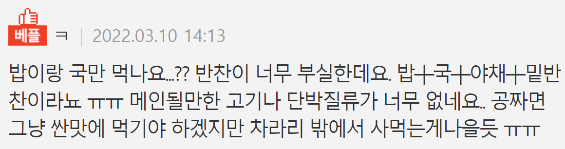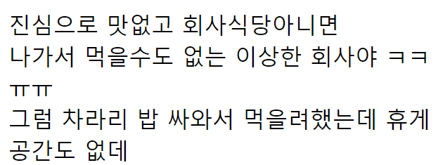 물론 돈을 아끼려는 사람들은 외부식당보다는 값이 싸거나, 회사에서 그냥 주기 때문에 이용한다.