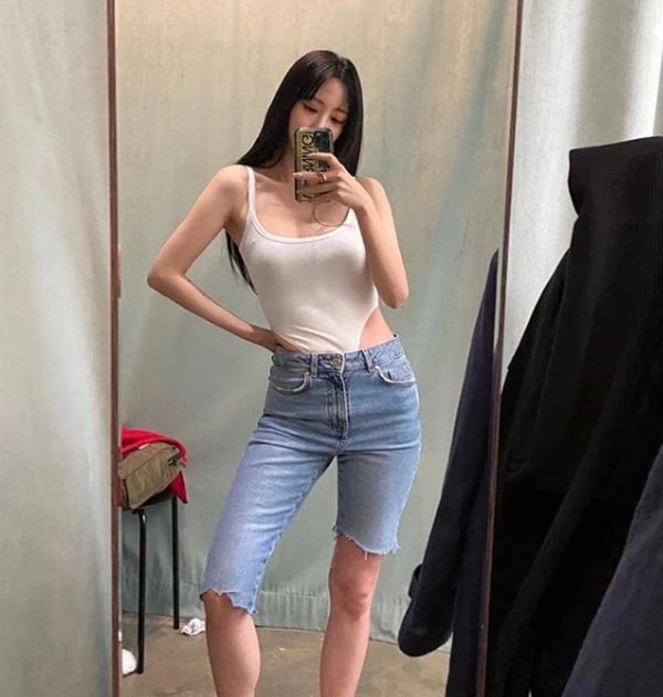 공개된 사진에는 촬영장에서 거울 셀카를 찍으며 포즈를 취하고 있는 한예슬의 모습이 담겨져 있는데 이날 그는 어깨 라인과 쇄골이 훤히 드러나는 흰색 끈민소매에 청반바지를 입고 엄청난 몸매를 자랑했다.