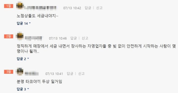 해당 내용을 접한 누리꾼들은 “와 해볼만 한데…대기업이랑 비슷하냐ㄷㄷ”, “노점상들도 세금 내야지….” 등의 다양한 반응을 보였다.