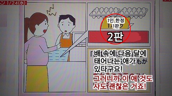 한 명에게 한 판만 한정판매하는 가게에서 임신했다는 이유로 아기 몫까지 두 판 사면 안되냐고 우기는 손님.