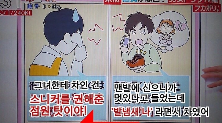 새로 산 신발 신고 차였다고 신발 추천해준 점원 탓하는 손님.