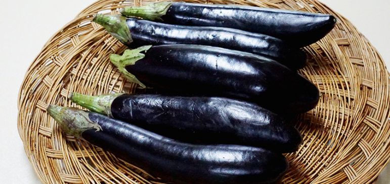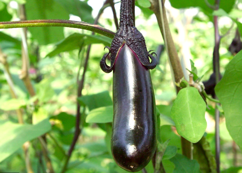 신선한 가지는 열매 꼭지 부분에 가시가 있어 취급에 주의를 요하기도 하며, 검은 빛깔의 껍질에는 안토시아닌이 많이 들어있다.