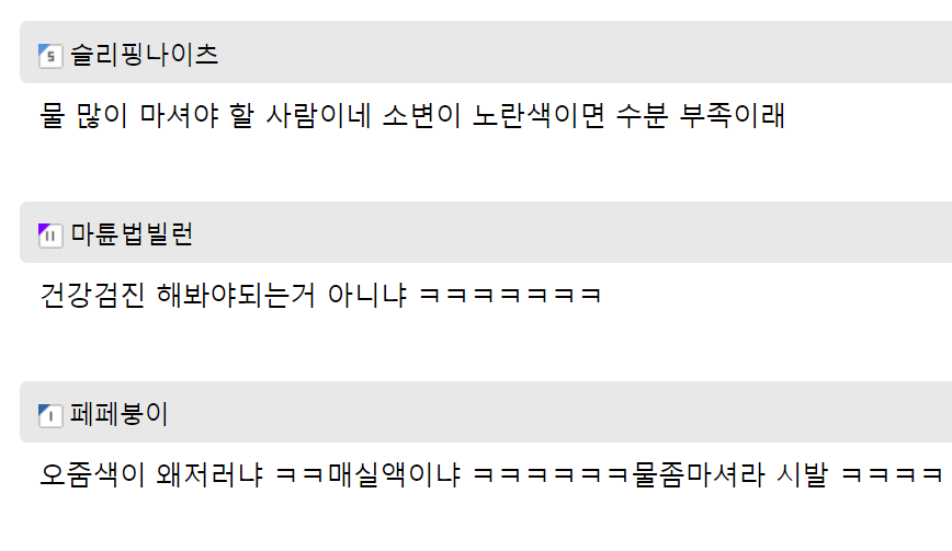 이를 본 온라인 커뮤니티 네티즌들은 “저기는 화장실이 없나요? 왜 오줌을 페트병에 모아둔 거죠?”, “근데 오줌이 맞긴 한가요? 오줌 색상이 너무 이상한 것 같네요.”, “진짜 세상에 이상한 사람 많습니다.”라는 반응을 보였다.