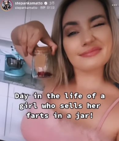 매체에 의하면 스테파니는 유리병에 방귀를 담아 뚜껑을 닫은 후 택배를 통해 판매 중인데, 가격은 약 994달러(약 118만 원)이라고 전해진다.