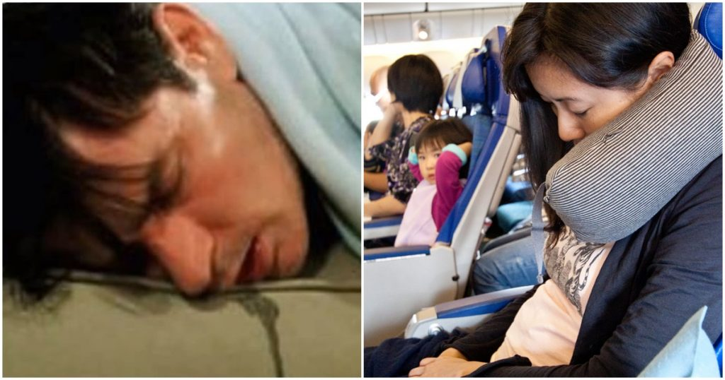 장거리 야간 비행을 할때 비행기에서 자는 승객들이 많다.