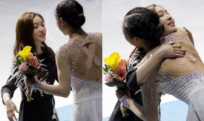 지난 9일 가장 높은 봉송대에서 하얀 드레스를 입고 나타난 김연아는 빙판 위에서 우아한 스케이팅을 보여준 후 성화를 건네받았다.