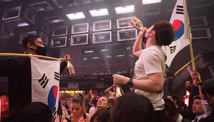 이에 놀란 클럽 마퀴의 관계자는 감사 표시로 모든 전광판과 조명을 ‘태극기’로 도배해줬고, 양주에 태극기를 꽂아주는 등 극진한 서비스를 해줬다.