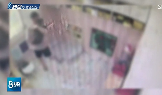 CCTV 화면에는 빨갛게 부은 아이 손과 아이가 아파서 바동거리는 장면이 담겼다.
