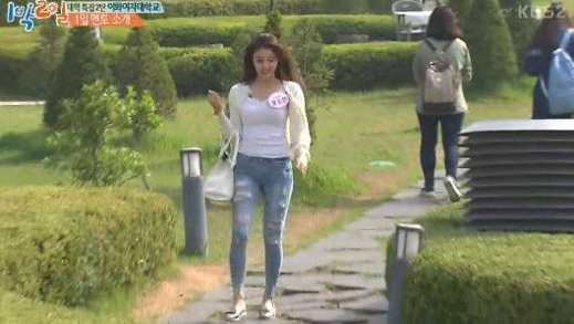 1박2일 멤버 김준호와 짝을 이뤄 대학 특집 편에 출연했던 정유진은 귀여운 외모와 서구적인 몸매로 시선을 받았다.