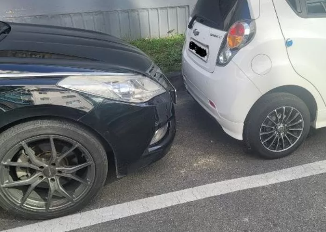 자신의 차량 하나 더 자리 맡아놓기 위해 매일 ‘2칸 주차’하는 스파크 운전자