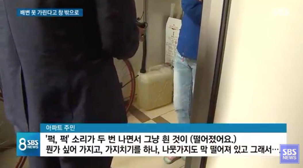 해당 장면을 목격한 아파트 주민은 “퍽,퍽 소리가 두 번 나면서 그냥 흰 것이 떨어졌어요”라며 당시 상황을 진술했다.