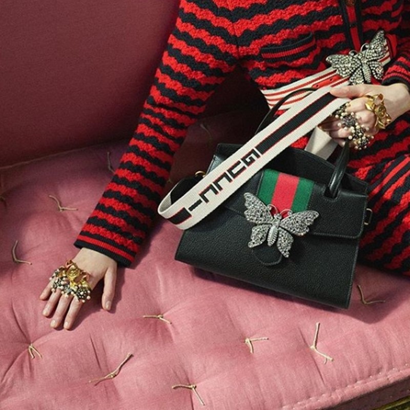 특히 구찌의 유니크한 스타일링을 더욱 빛내주고 패션피플들의 눈길을 사로잡은 것은 구찌의 2018 신상 백.