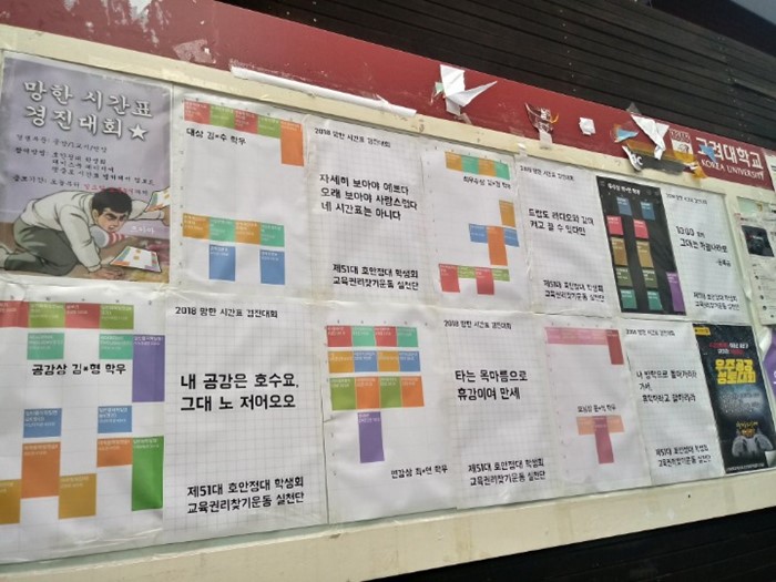 고려대학교에서 열린 ‘망한 시간표 경진 대회가 많은 대학생들에게 웃음과 공감을 자아내고 있다.