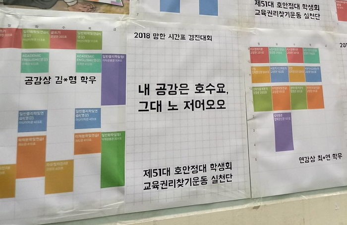 지난 16일부터 18일까지 고려대학교 학생회는 이번 학기 가장 망한 시간표를 가리는 대회를 열였다.