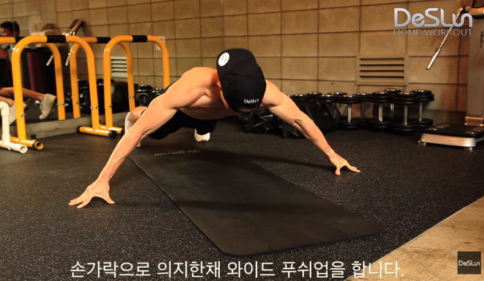‘맨몸 운동 전도사’로 이름을 알린 헬스트레이너 조성준은 자신의 공식 유튜브 채널을 통해 가슴과 삼두 근육을 집중 자극하는 팔굽혀펴기 동작이 담긴 영상을 공개했다.