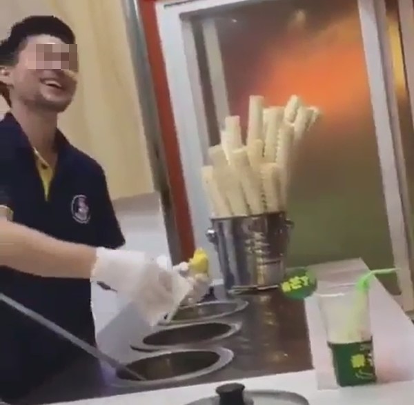 직원이 아이스크림으로 장난칠 것을 예상하고 미리 선수 친 것이다.