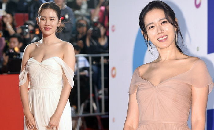 각종 영화 시상식에서 드레스 입은 모습을 자주 보여준 손예진은 가녀린 어깨와 예쁜 쇄골로 유명하다.