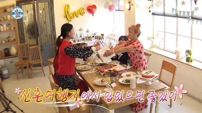 이날 박나래는 결혼을 앞둔 17년 친구인 혜련이에게 “신혼여행지에서 입었으면 좋겠어”라며 작은 선물을 건넸다.