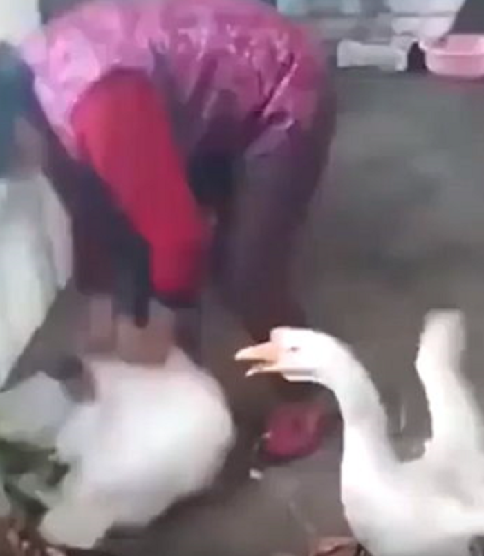 도축을 앞두고 자신의 배우자를 보호하려 한 거위부부의 모습이 카메라에 담겼다.