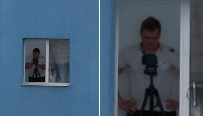공개된 영상에는 카메라로 초점을 맞추며 반대편 건물을 촬영하는 모습이 담겨있다.