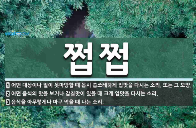 쩝쩝은 입을 벌리고 음식을 아무렇게나 마구 먹을때 나는 소리의 의성어이다.