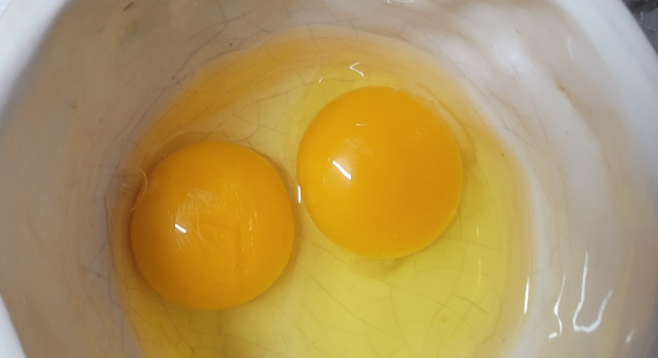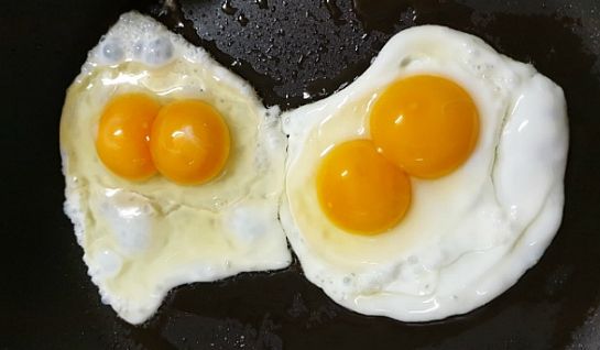 쌍란은 노른자가 2개 들어가있는 계란이며 쌍둥이라 한다.