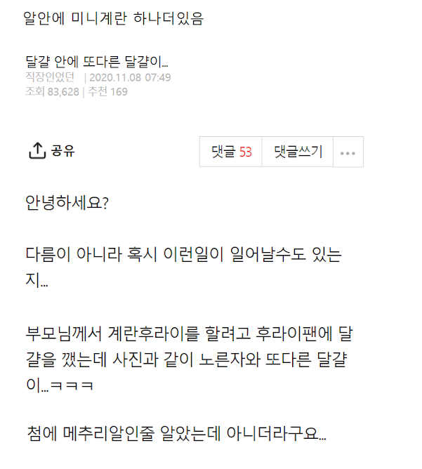 A씨는 “달걀 달걀 왕달걀” 라 첫 문장을 전했다.