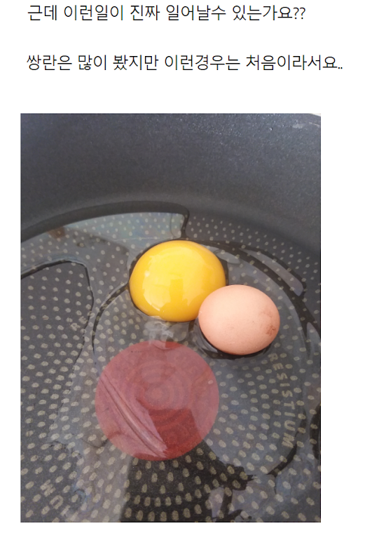 사람의 쌍둥이가 드물듯이 달걀의 쌍란도 엄청나게 드문데, 0.1%의 확률로 나온다.