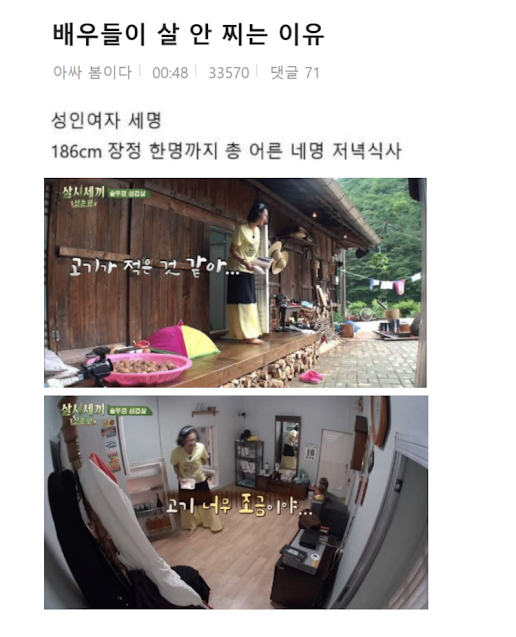 작성자 A씨는 “배우들이 살 안 찌는 이유” 라는 제목의 글로 많은 이들의 궁금증을 증폭시켰다.