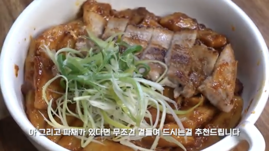 엽떡과 삼겹살을 함께 볶아 파채까지 곁들여 주면 떡볶이가 아닌 다른 요리를 먹는 듯한 느낌이 든다.