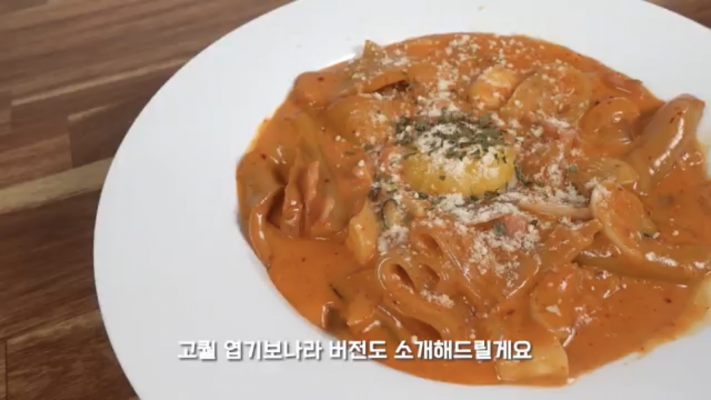 까르보 불닭볶음면과 함께 요리한 엽기보나라. 느끼함과 칼칼함의 조합이 완벽하다.