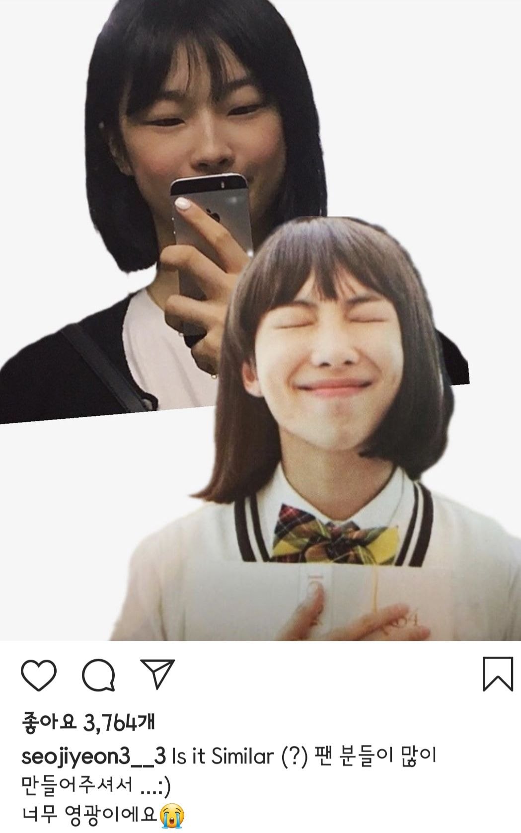 하지만 서지연 선수는 자신의 부모님보다 사촌오빠인 RM을 더 닮았다.